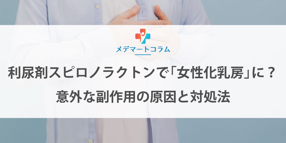 利尿剤スピロノラクトンを飲んで胸の膨らみや痛みが…それは女性化乳房かもしれません。このコラムでは、スピロノラクトン特有の副作用が起こる仕組みと、薬の減量・変更などの対処法、他の利尿剤との違いを分かりやすく解説します。
