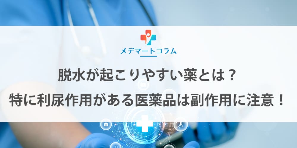 薬の副作用で脱水が起こることがあります。特に利尿薬や糖尿病治療薬(SGLT2阻害薬)を服用中の方は注意が必要です。このコラムでは、なぜこれらの薬が脱水を引き起こすのか、初期症状、高齢者が特に注意すべき理由、こまめな水分補給などの予防法まで詳しく解説します。