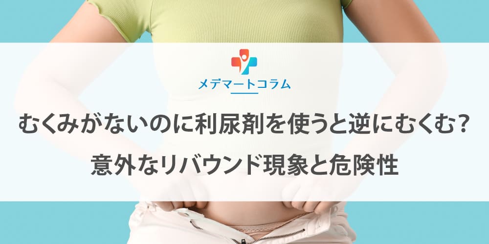 むくみがないのに利尿剤を使うと、逆にむくみが悪化する「リバウンド現象」をご存知ですか? 健康な人が使用すると、体は水分不足と判断し、抗利尿ホルモンを出して水分を溜め込もうとします。このコラムでは、自己判断での使用がいかに危険か、そのメカニズムと正しい対策を解説します 。