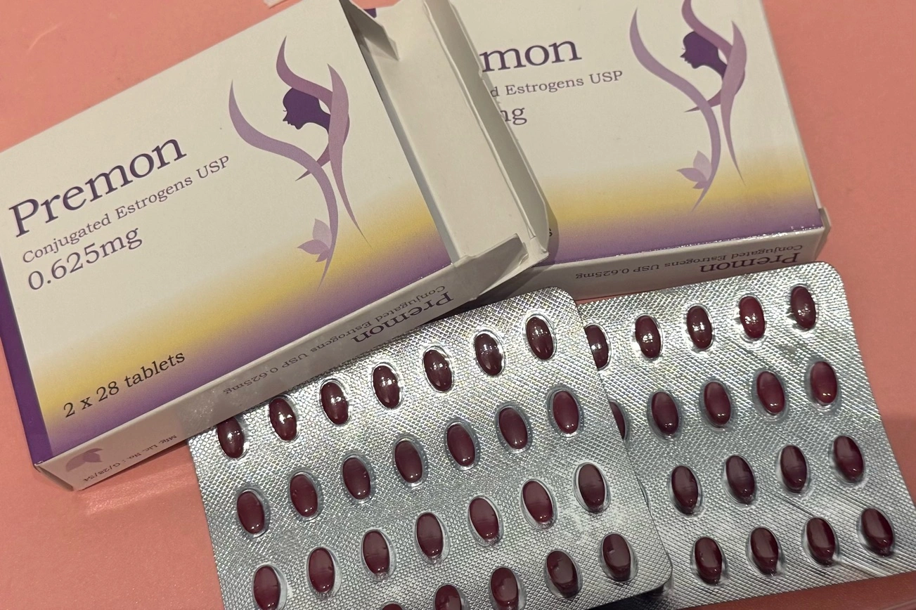 プレモンは低価格で購入できる人気の女性ホルモン剤になります。更年期障害の治療などによく使われる、『プレマリン』と同様の成分エストロゲンが含まれております。主成分である、エストロゲンを補充することで、女性の方が閉経後に体の中で女性ホルモンを作れなくなることで発症する更年期障害によった腰痛・肩こり・多汗・冷え・動悸・イライラなどの不快な症状を改善し、女性ホルモンを安定させる働きがあります。