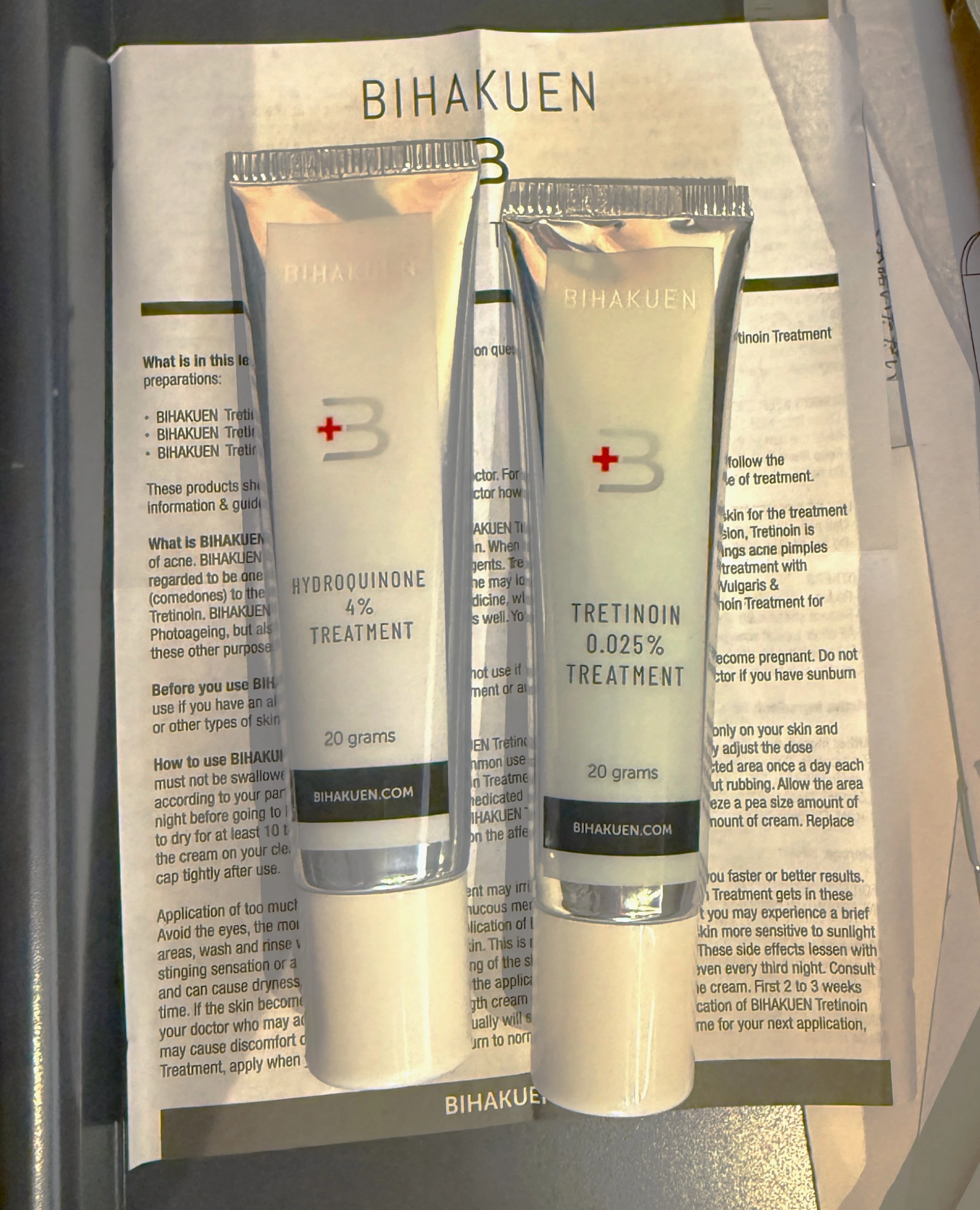 【BIHAKUENシリーズ】ハイドロキノンクリームとトレチノインクリームの両方を併用することで、美白効果がさらに上がります。